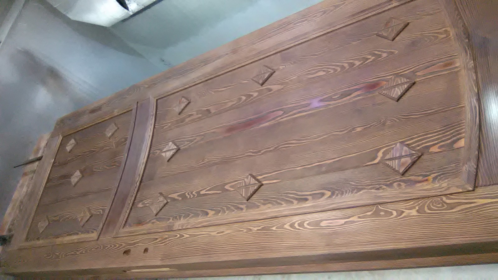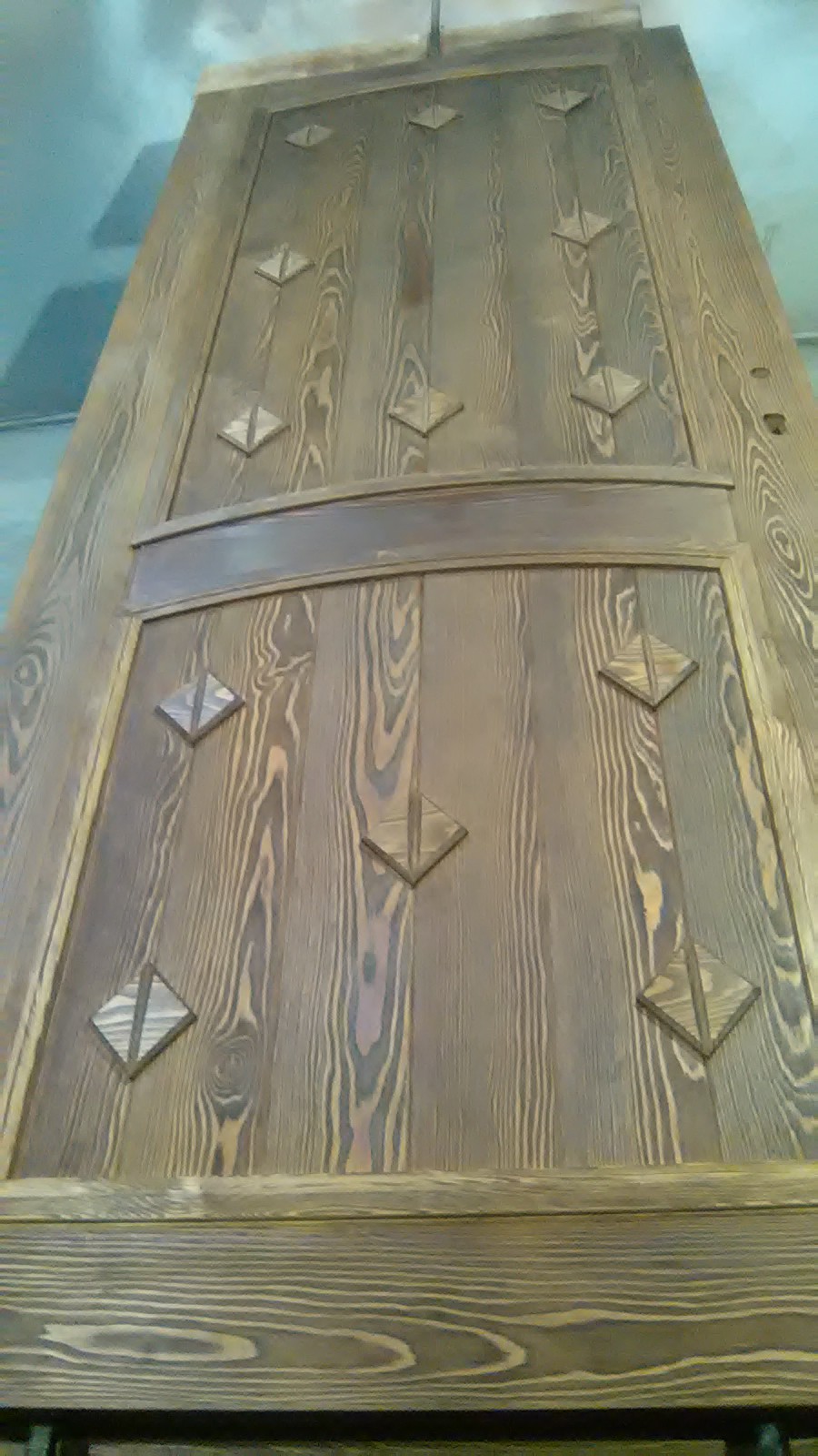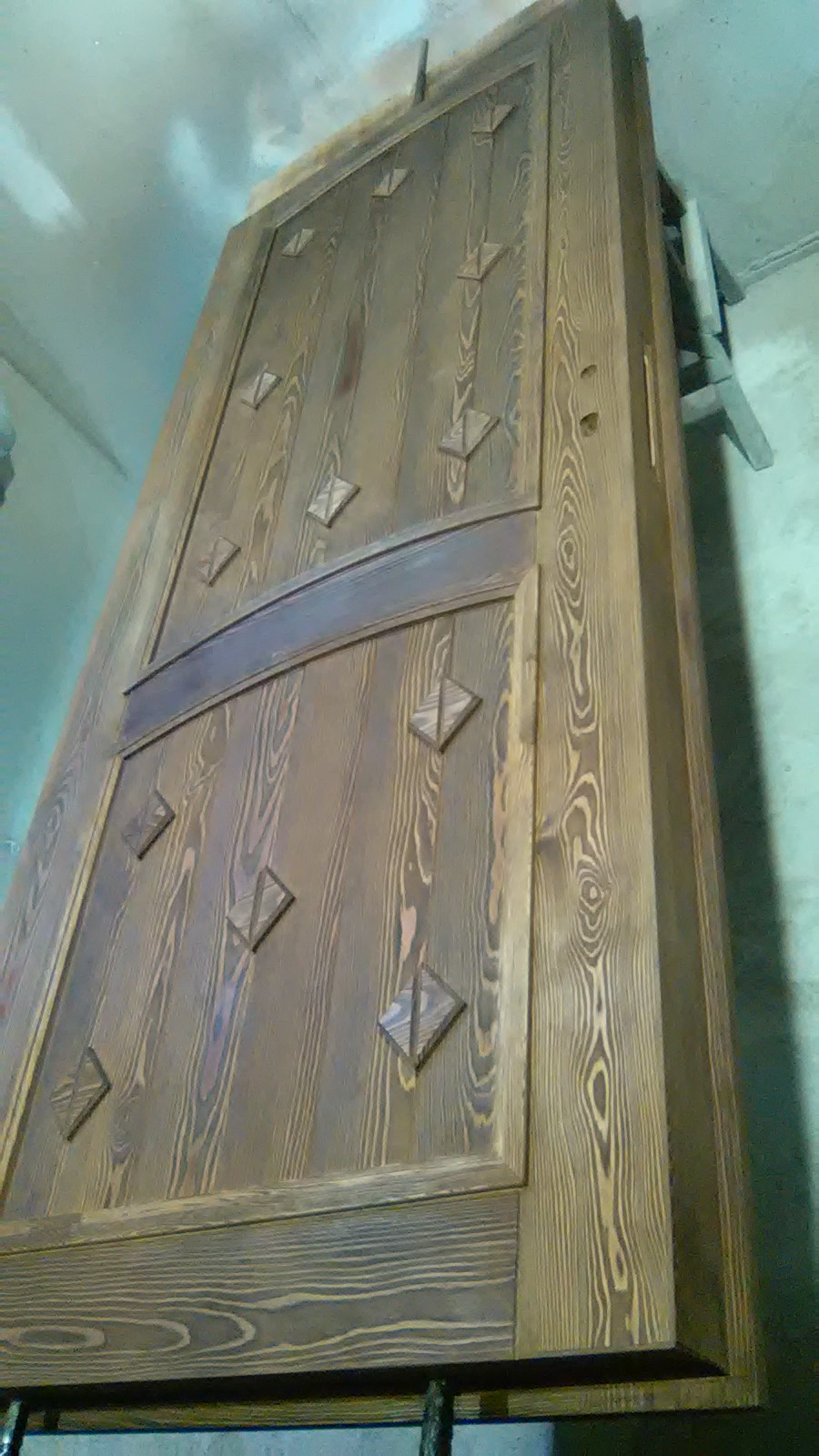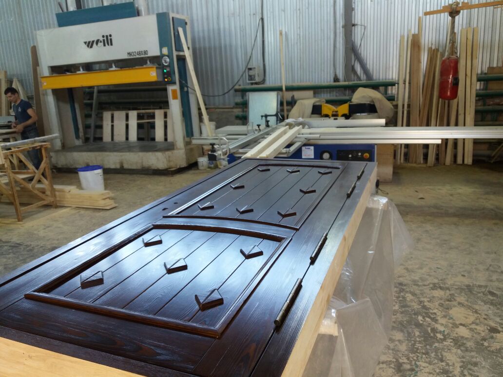 Возможно изготовление двухстворчатых и арочных входных деревянных дверей такого типа.