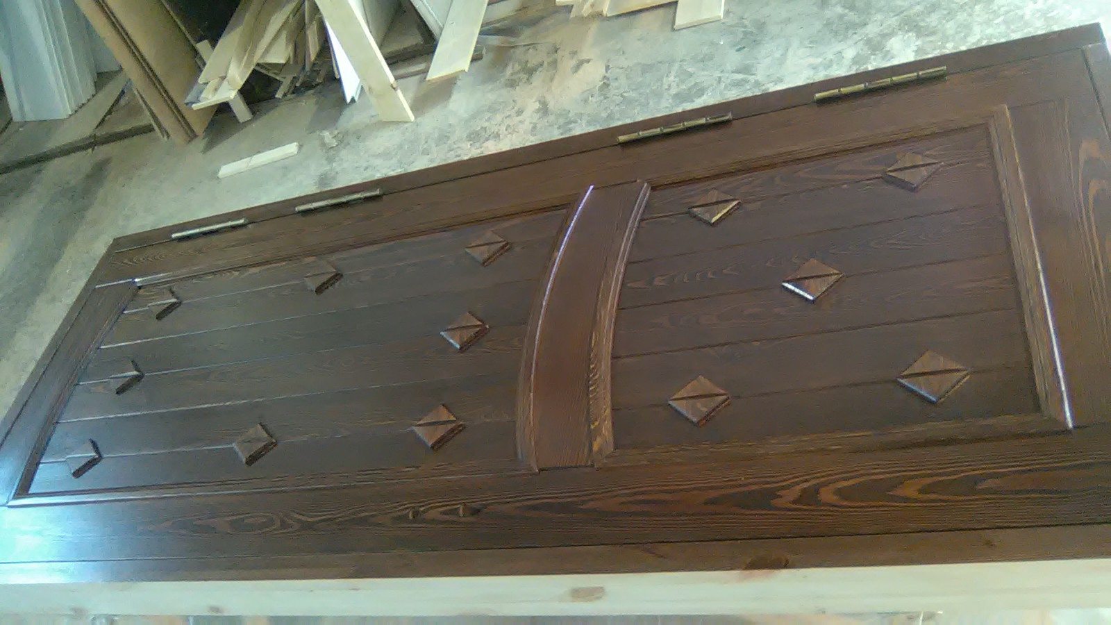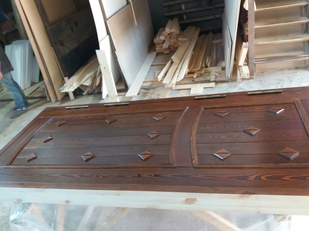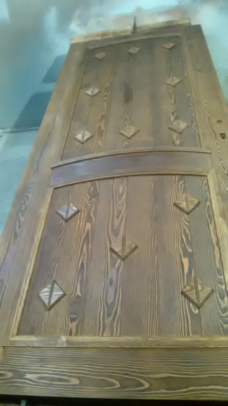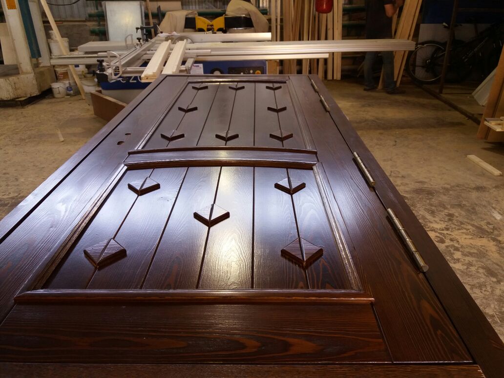Возможно изготовление двухстворчатых и арочных входных деревянных дверей такого типа.