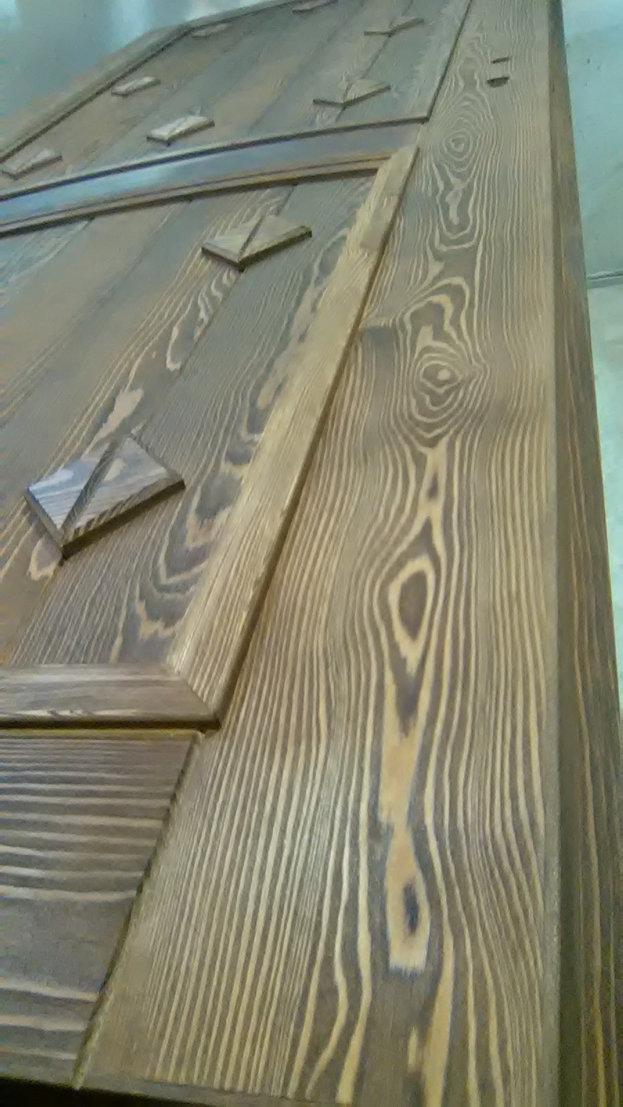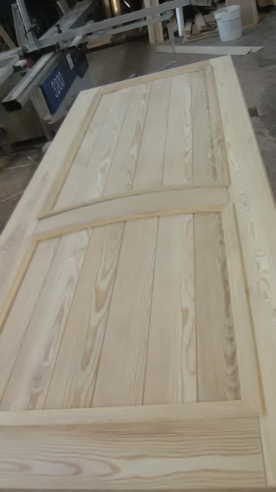 - Входная сосновая деревянная дверь с имитацией филёнки
